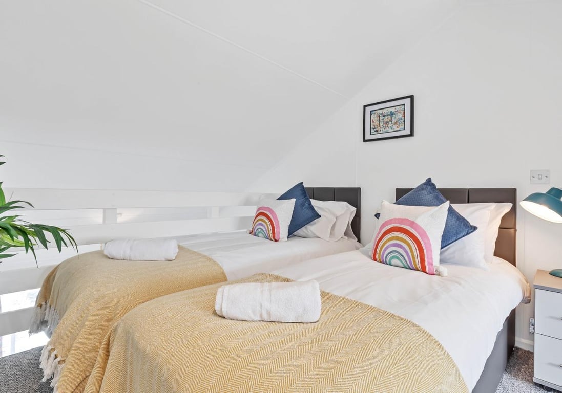 - Separate bedroom area with zip-and-link beds (set up as a double but can be single beds too – just let us know 7 days before arrival)