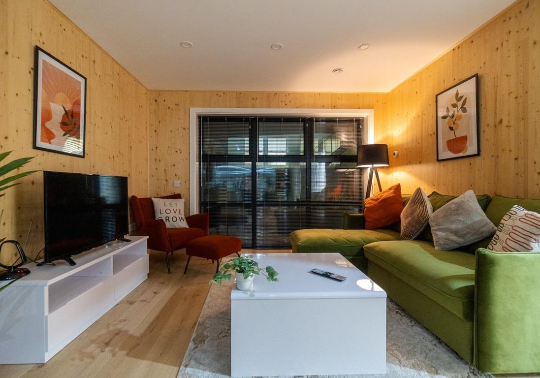 Our prestigious Eco Homes in the vibrant Hove. Green Mews 2 offers stylish accommodation for 6 guests with ethically sourced furnishings and balcony. Pioneering sustainability with solar panels, underfloor heating, and recycled walls. Each house features private parking with EV charging, a patio, and eco-friendly amenities to get you started. Guests can make use of the wifi and smart TV, allowing them to stream their favourite shows and movies from platforms like Netflix and Amazon Prime.