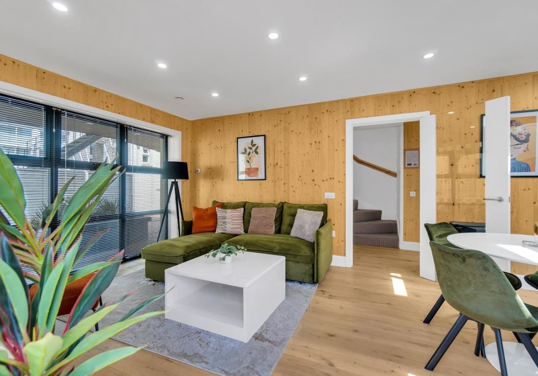 Our prestigious Eco Homes in the vibrant Hove. Green Mews 3 offers stylish accommodation for 6 guests with ethically sourced furnishings and balcony. Pioneering sustainability with solar panels, underfloor heating, and recycled walls. Each house features private parking with EV charging, a patio, and eco-friendly amenities to get you started. Guests can make use of the wifi and smart TV, allowing them to stream their favourite shows and movies from platforms like Netflix and Amazon Prime.