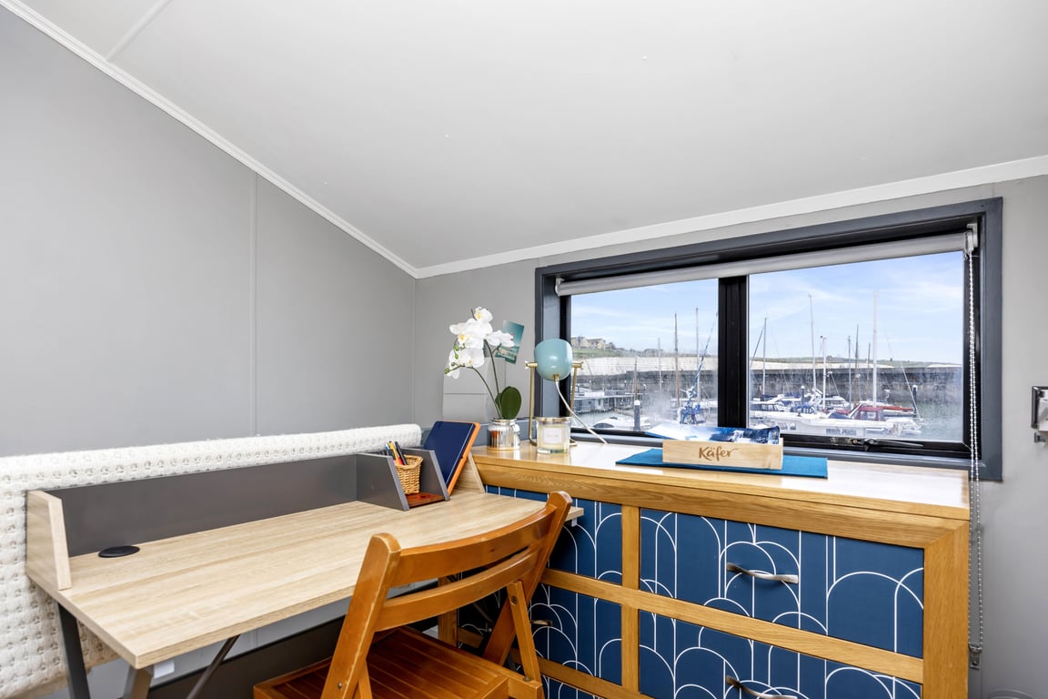 Ever wondered what it’s like to have a luxury room on a cruise ship – but with all the comforts and conveniences of solid ground? Welcome to Brighton Water Cabin, a truly unique and boutique holiday home floating right in the heart of Europe’s largest marina. This is more than just a place to stay – it’s an experience you simply won’t find anywhere else in the world. Set on the sought-after East Jetty of Brighton Marina, this petite, charming mezzanine apartment offers stunning panoramic views over the boats and water, best enjoyed from your very own private terrace. Whether you're sipping a morning coffee or toasting the sunset, the ever-changing waterscape provides a peaceful and picturesque backdrop. Step out of your front door and you’re moments from a buzzing mix of restaurants, bars, cafés, boutique shops, a cinema, bowling, and even a casino. And when you're ready to explore more, Brighton's vibrant city centre is just a short bus or taxi ride away.