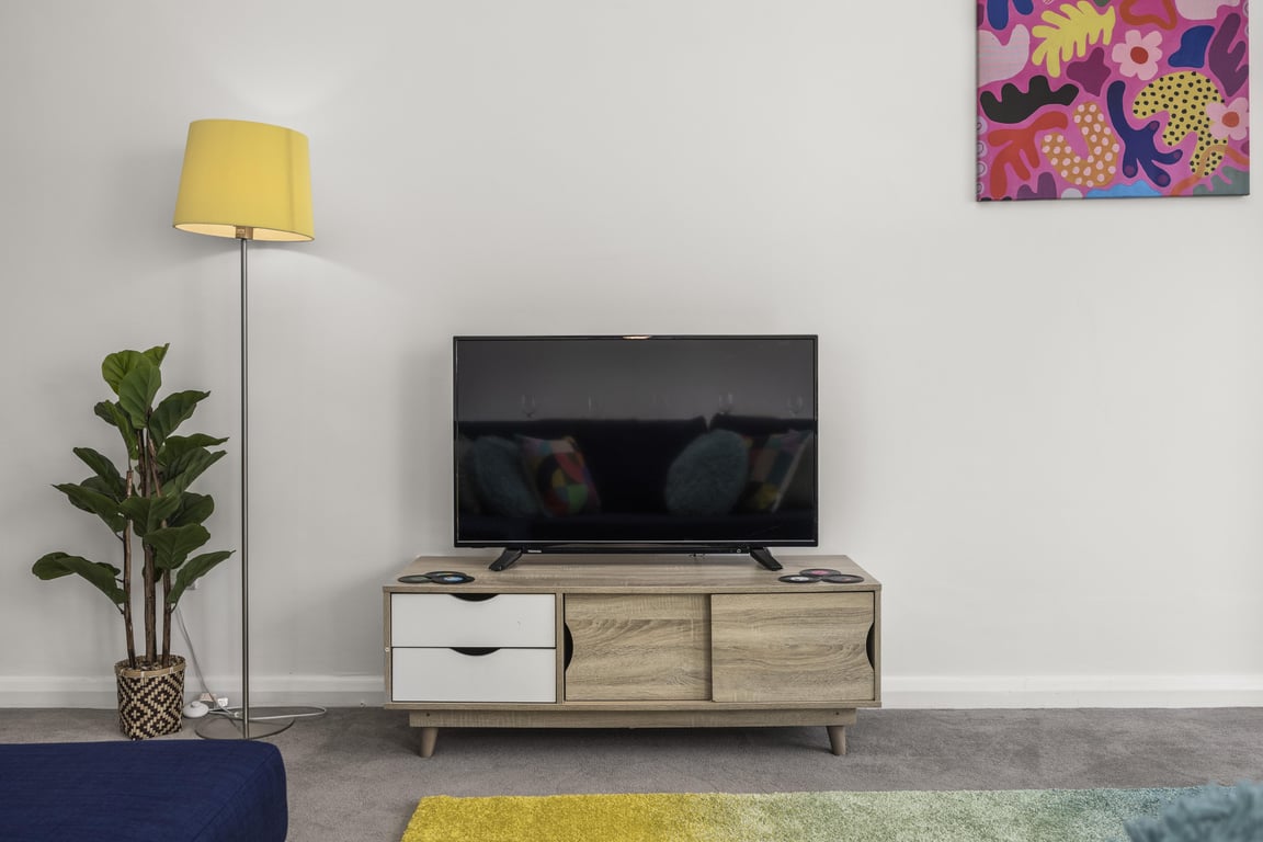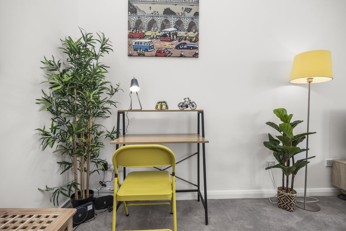 You’ll find the sociable and light living room set up with a Smart TV and double sofa bed not yet made up as a bed, making it a lovely space for chilling out, getting together for a few drinks or catching up on the events of the day. If you prefer, you can simply relax and watch a movie on the TV or make use of the designated work space.