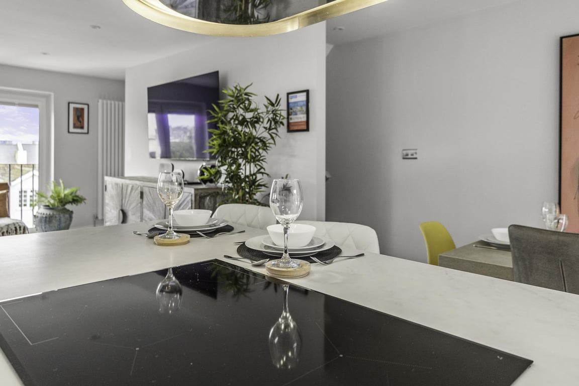 The dining area has a tonne of natural daylight pouring in from the patio garden, please note - access past the gate is not for guest use. The fully equipped kitchen has an induction hob, integrated fridge/freezer and breakfast bar plus plenty of cookware, glassware, crockery and cutlery so you can easily cook up a brunch or lunch for everybody. In addition to this we offer complimentary tea and coffee, salt and pepper - so please help yourself.
