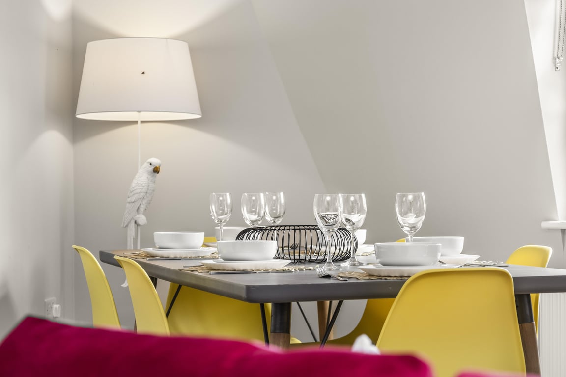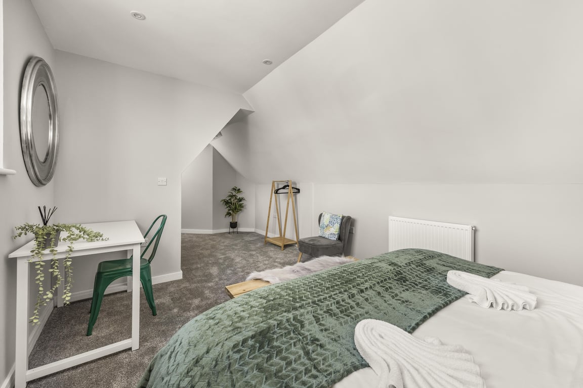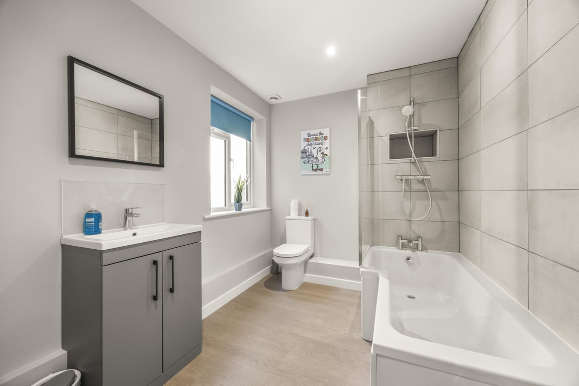 The living area has a tonne of natural daylight pouring in and the fully equipped kitchen has a washing machine, microwave, oven, kettle plus plenty of cookware, glassware, crockery and cutlery so you can easily cook up a brunch or lunch for everybody. In addition to this we offer complimentary tea and coffee, salt and pepper - so please help yourself. The dining table seats up to 6 guests. You’ll find the sociable and light living room set up with a Smart TV and double sofa bed not yet made up as a bed, making it a lovely space for chilling out, getting together for a few drinks or catching up on the events of the day. If you prefer, you can simply relax and watch a movie on the TV or make use of the designated work space.