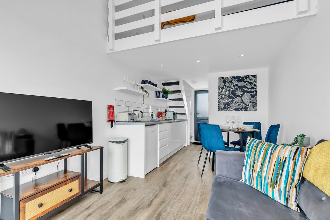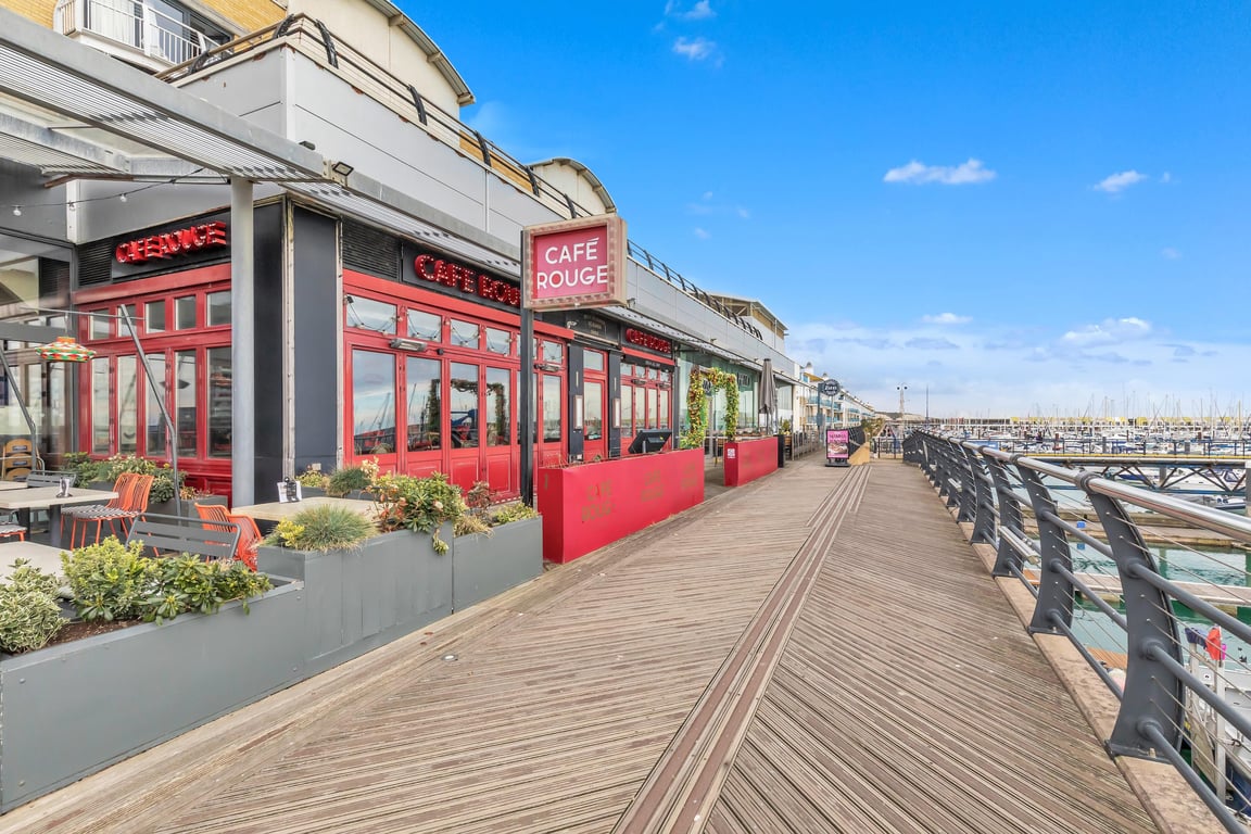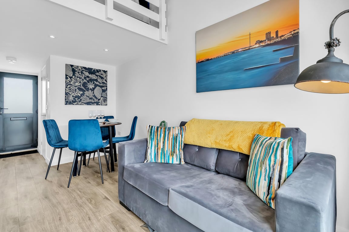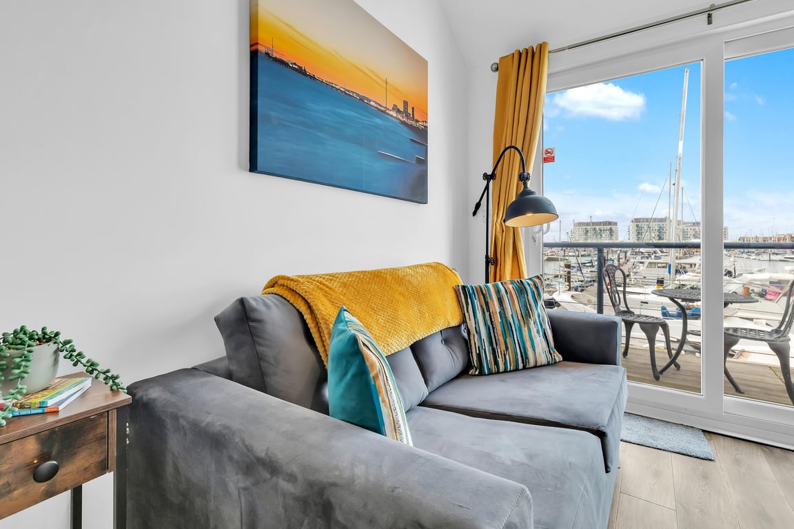 Ever wondered what it’s like to have a luxury room on a cruise ship – but with all the comforts and conveniences of solid ground? Welcome to On The Water 5, a truly unique and boutique holiday home floating right in the heart of Europe’s largest marina. This is more than just a place to stay – it’s an experience you simply won’t find anywhere else in the world. Set on the sought-after East Jetty of Brighton Marina, this petite, charming mezzanine apartment offers stunning panoramic views over the boats and water – best enjoyed from your very own private terrace. Whether you're sipping a morning coffee or toasting the sunset, the ever-changing waterscape provides a peaceful and picturesque backdrop. Step out of your front door and you’re moments from a buzzing mix of restaurants, bars, cafés, boutique shops, a cinema, bowling, and even a casino. And when you're ready to explore more, Brighton's vibrant city centre is just a short bus or taxi ride away.