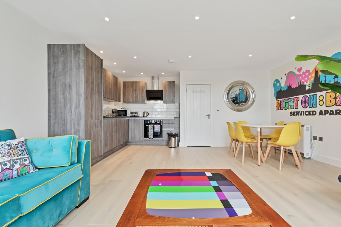 The Right ON: Bright ON city apartments offer you all that central Brighton can provide. Just a moment from the town centre you'll be set for both great shopping and nightlife. Just up the road to Brightons world famous Band Stand and beach these 6 self contained apartments could not be better positioned. The property can accommodate up to 28 guests, with each apartment providing modern comfortable amenities including fully equipped kitchens, and living rooms with WiFi and smart TVs streaming all your favourite shows. Perfect for groups, families or working professionals, the place will leave you buzzing from a perfect Brighton getaway!