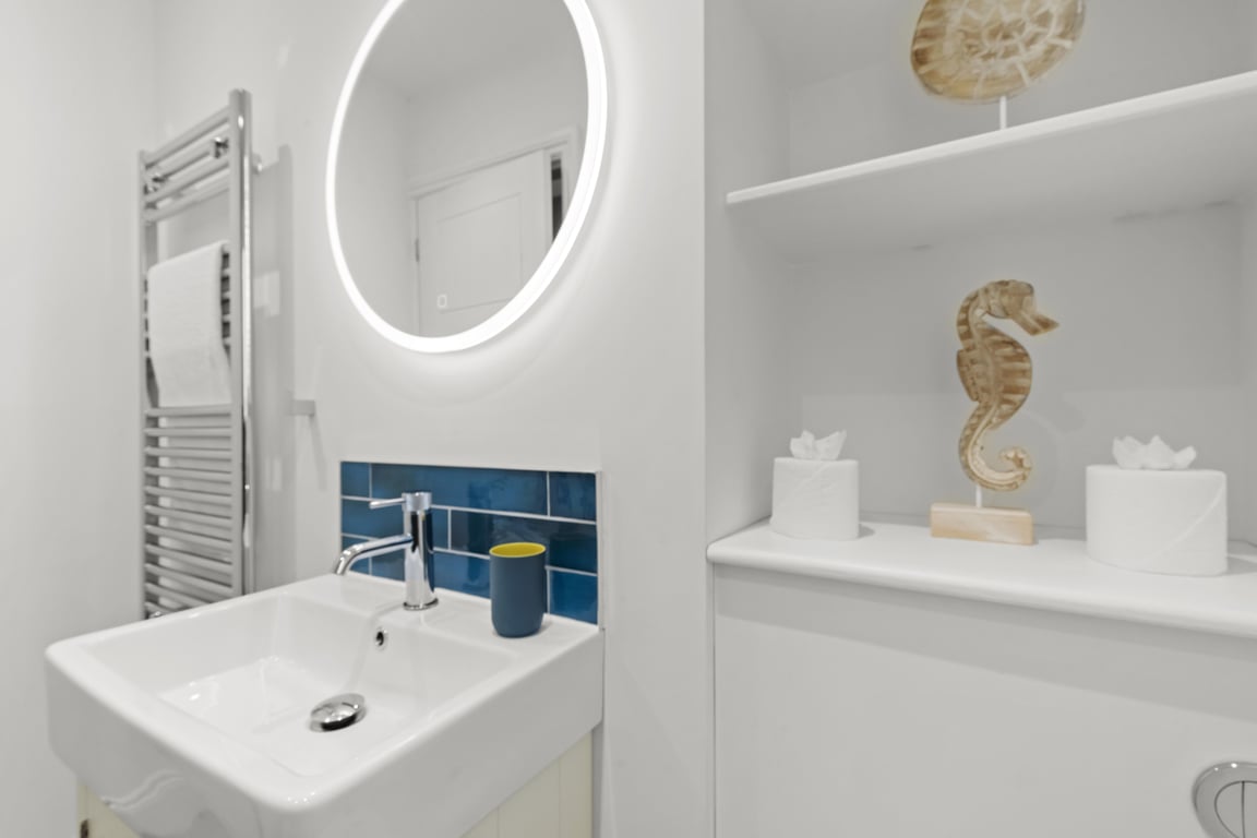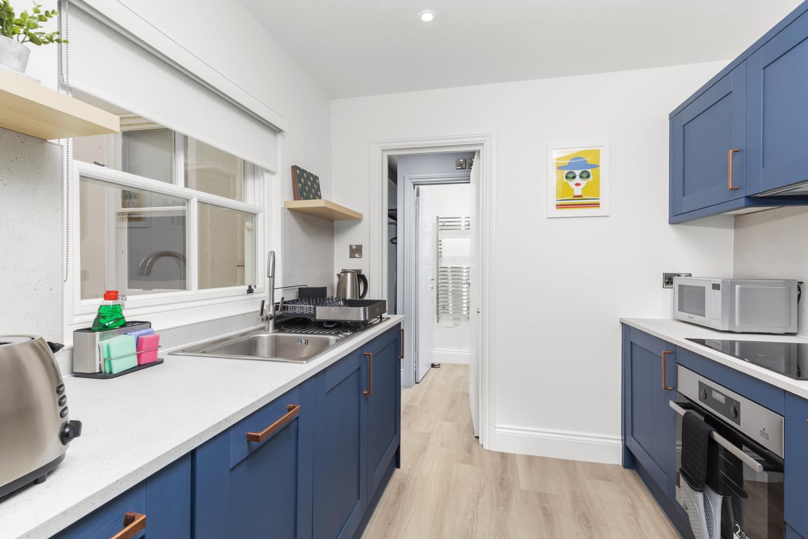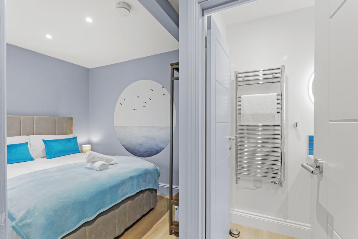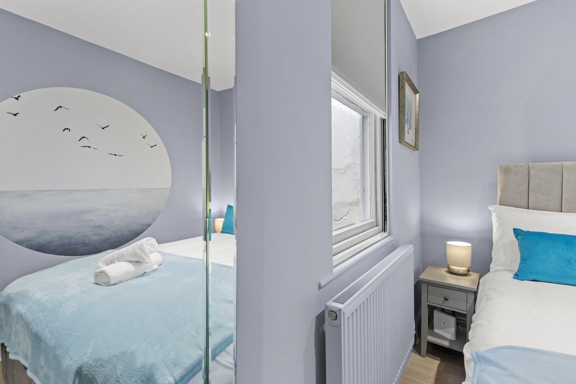 Sleeping up to 4 guests, this apartment has just undergone a high-quality refurbishment with a style that reflects the original period features and celebrates the sea. With its lavish marine interior paintwork, a wonderful hallway connects the living/dining room, bedroom with a separate, fully equipped, modern kitchen and second bedroom. The full bathroom with shower, plus another separate shower and toilet, make the apartment a very comfortable proposition; perfect for couples, families or working professionals.