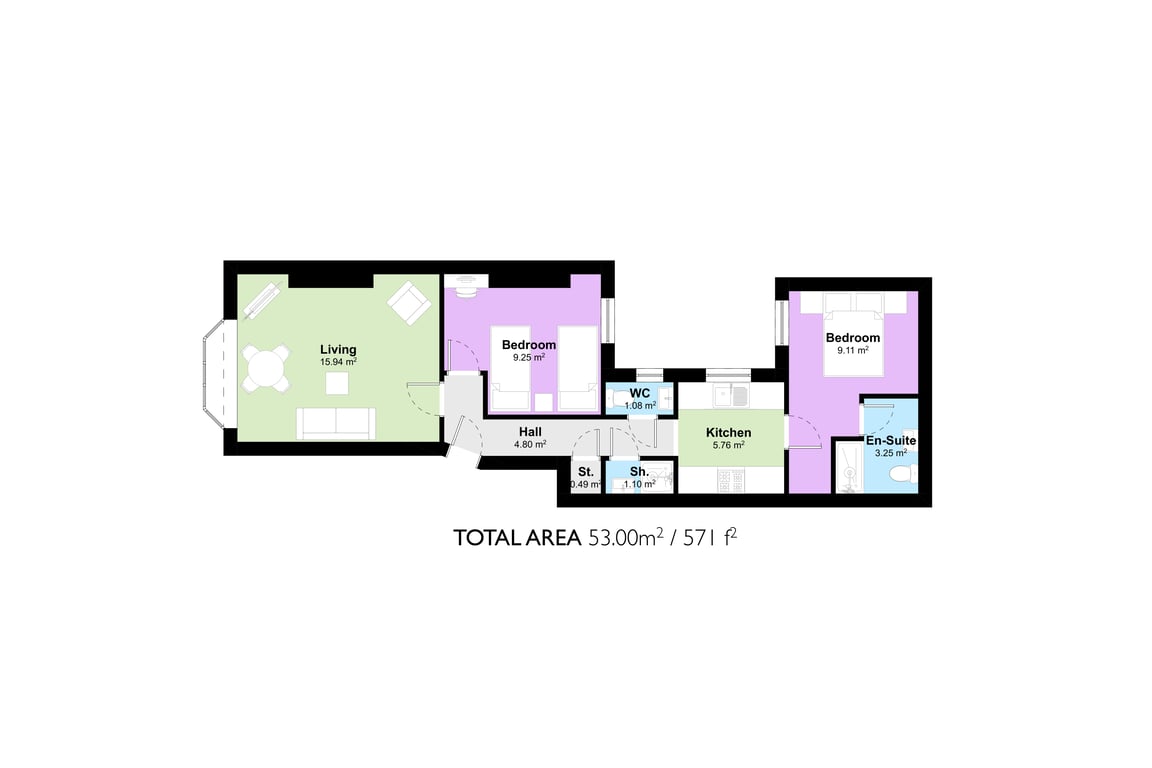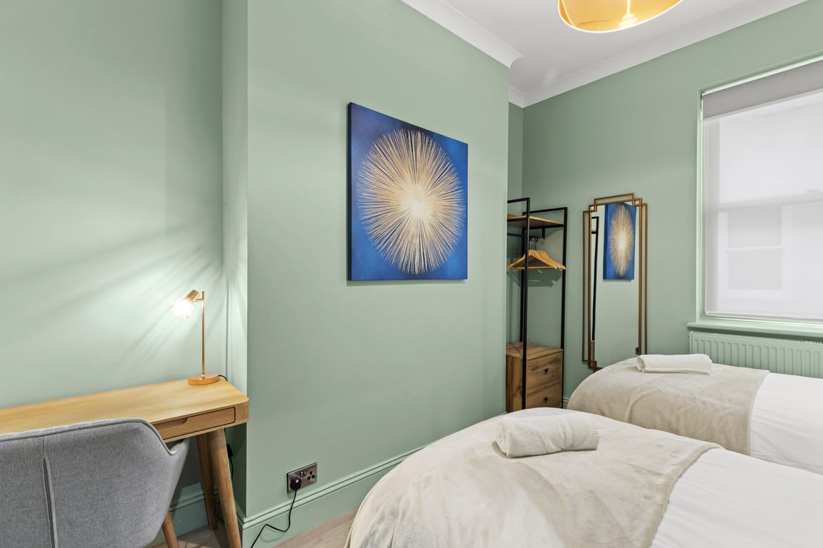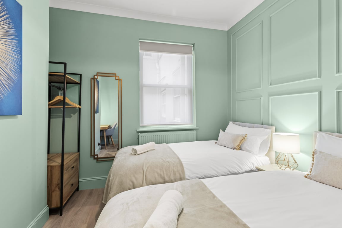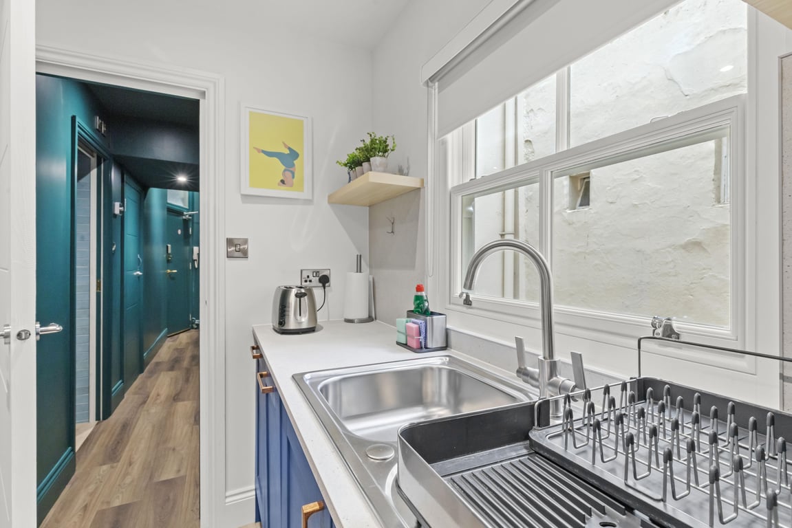 Sleeping up to 4 guests, this apartment has just undergone a high-quality refurbishment with a style that reflects the original period features and celebrates the sea. With its lavish marine interior paintwork, a wonderful hallway connects the living/dining room, bedroom with a separate, fully equipped, modern kitchen and second bedroom. The full bathroom with shower, plus another separate shower and toilet, make the apartment a very comfortable proposition; perfect for couples, families or working professionals.