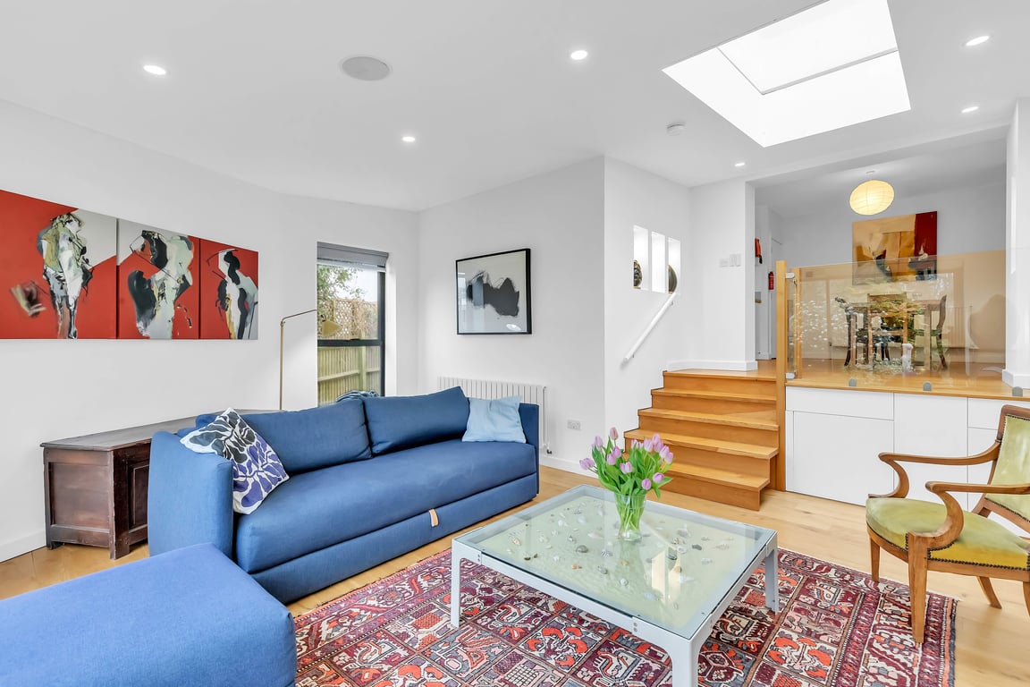 The kitchen and dining area is beautifully presented with natural light and all the essentials to feel right at home. Cook up meals with ease using the modern appliances, including a gas hob, oven, microwave, kettle, toaster and dishwasher, plus cookware, glassware, crockery and cutlery provided. The wooden dining table seats up to 5 guests and leads into a sunken living room furnished with comfortable seating, and large sliding doors that open out onto the garden – a perfect space for entertaining, relaxing or catching up on your favourite shows. There is a separate TV room equipped with a Smart TV (log in to your Netflix or Amazon Prime)