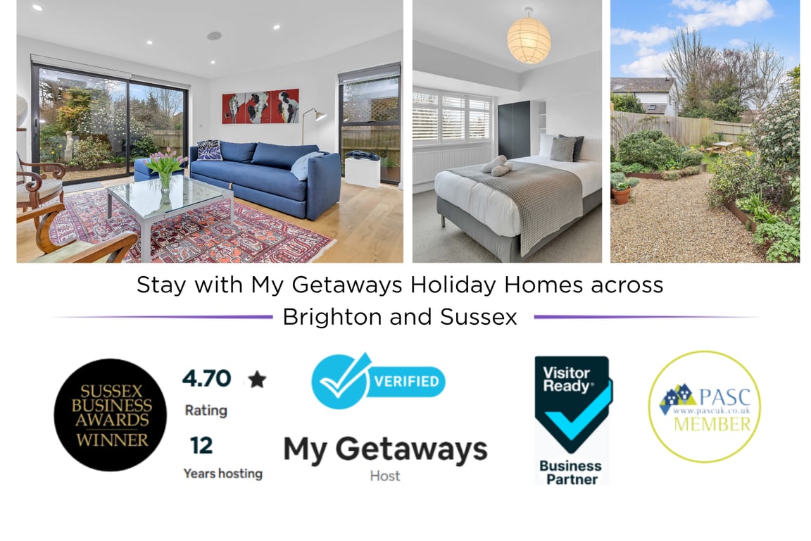 The bright, split-level living and dining areas flow into a fully equipped kitchen with modern appliances including an oven, gas hob, dishwasher, toaster, kettle and microwave – everything you need for cooking and entertaining. There are two living areas, one is part of the open/plan dining area with sliding doors that open onto a beautifully maintained garden, and the second living area features a comfy sofa, Smart TV (with super fast Wifi for Netflix and Amazon Prime access). Upstairs, the home continues to impress with peaceful bedrooms and the owner's artwork throughout. Whether you're here for business or leisure, this home blends comfort, space and a quiet suburban feel just a short drive from the buzz of Brighton’s city centre.