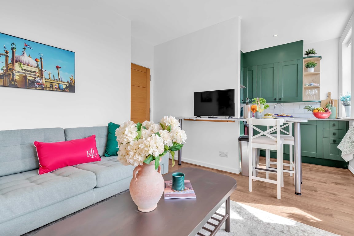 A Slice of Brighton is more than just a place to stay— a Brighton experience with a view in a central location. Perched on the top floor, this charming two-bedroom apartment captures sweeping vistas across the city skyline and out onto the iconic Brighton Pier. Perfectly suited for couples, small families, or professionals, the apartment comfortably sleeps up to 4 guests across two separate bedrooms. Step outside and you’re centrally located minutes from Brighton Pier, Brighton Centre, the beach, the Lanes & all Brighton's top attractions