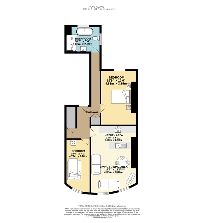 Welcome to Hove Alone 4, a stylish apartment in the heart of Hove, just moments from Brighton's iconic seafront, shops, and nightlife. This 2-bedroom apartment sleeps up to 7 guests, including a sofa bed in the bright living room with city views. Featuring a fully equipped kitchen with a dishwasher, washer/dryer, and electric hob, this apartment is ideal for couples, families, or working professionals. Enjoy streaming your favourite shows on the Smart TV with free Wi-Fi, or gather around the dining table for a meal with friends. Please note: this property is accessed via stairs.