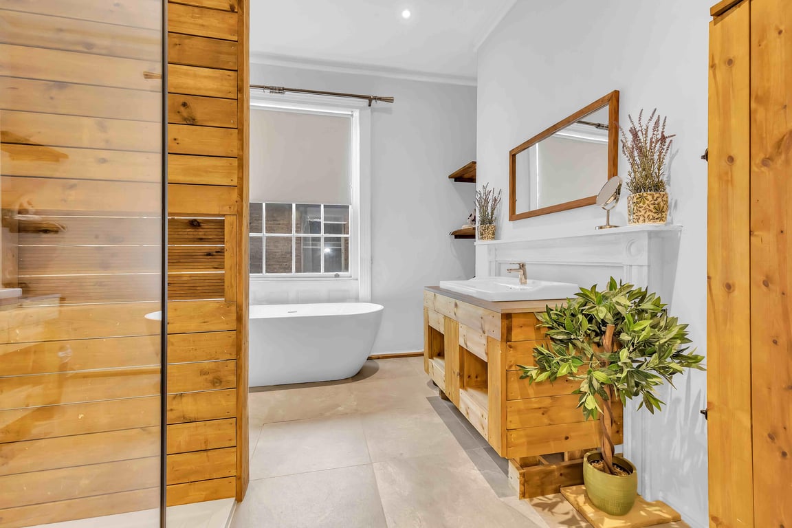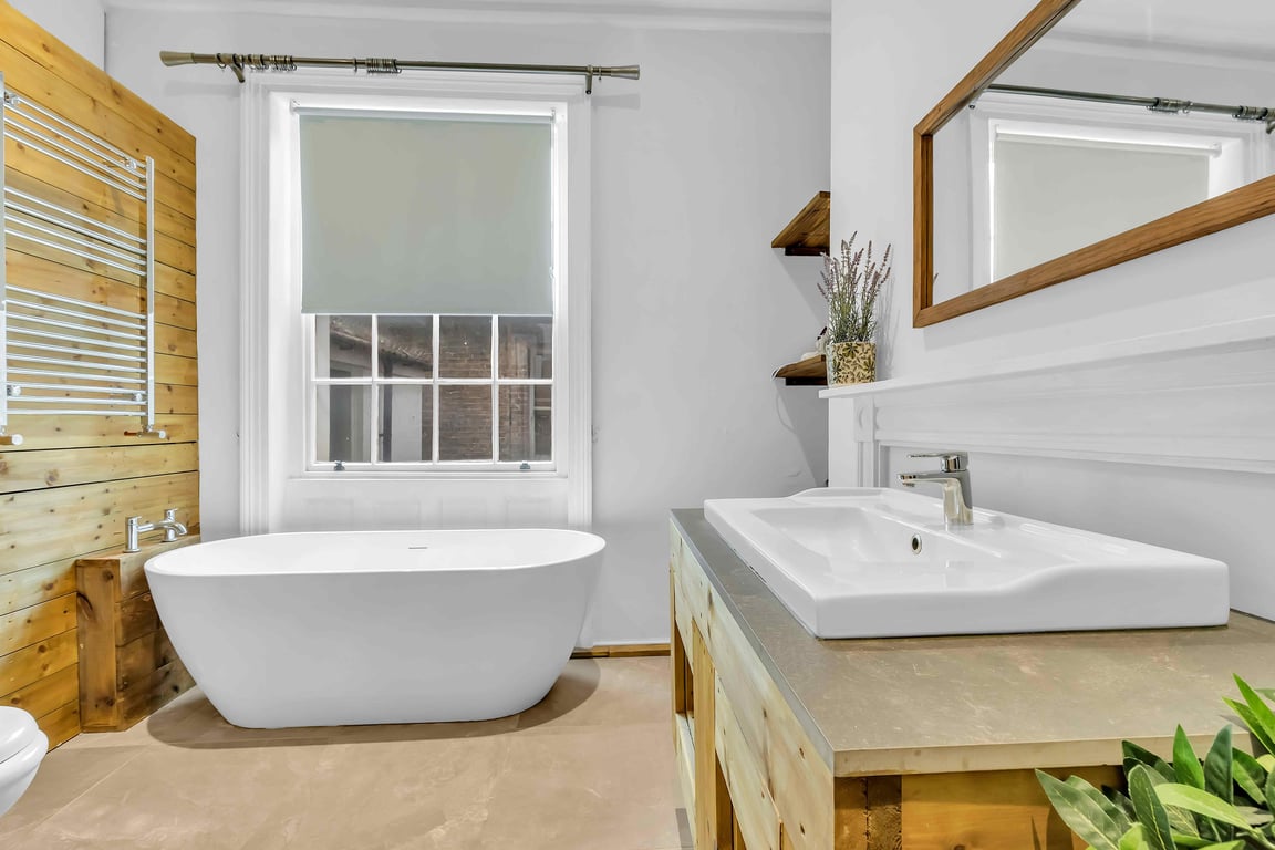 Welcome to Grafton Rustic, a beautifully styled studio apartment set in the heart of Brighton’s lively Kemptown. Sleeping up to 2 guests, with modern decor, rustic wooden touches, and a king-size bed, it's perfect for couples or professionals seeking comfort and style. Just a short stroll from the Lanes with its boutique shops, cafés, cinemas, and pubs – and only minutes from Brighton Pier and beach. The spacious, boutique-styled studio apartment has an open plan feel to it with a bright living space and a large bathroom with a walk-in shower and a separate bath.