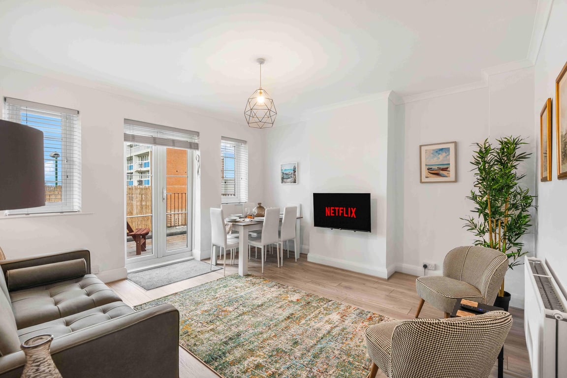 Ferry Fab is a welcoming coastal 2-bedroom apartment set in the heart of Shoreham-by-Sea, perfectly positioned for relaxed seaside stays, working visits, and longer breaks. Sleeping up to 6 guests and located moments from the River Adur and within easy reach of the beach, this property offers a peaceful setting while staying brilliantly connected to Brighton, Worthing and beyond. The spacious, bright living room includes a double sofa bed and a Smart TV for streaming all your favourite platforms. The fully equipped kitchen has modern amenities to make your stay comfortable.