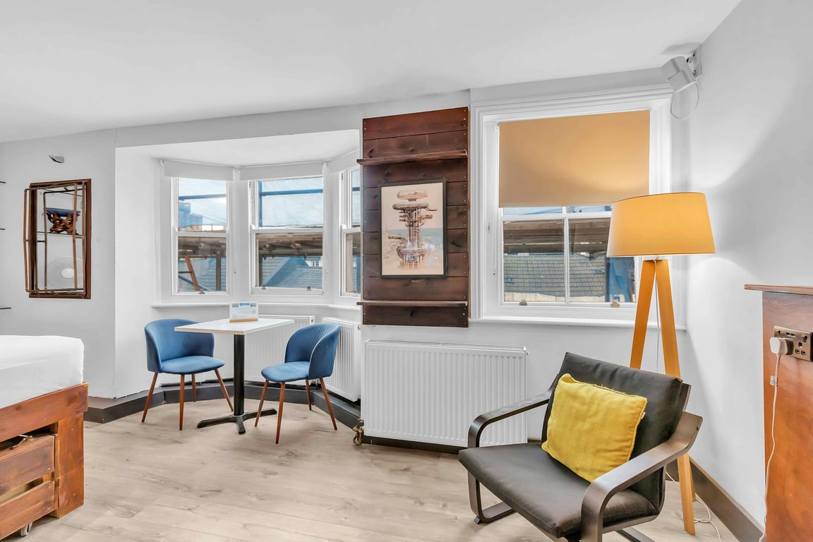 Each Grafton Apartment creates a cosy open-plan space that’s perfect for relaxing after a day exploring Brighton. The living and sleeping area features comfy beds and a Smart TV with free WiFi, so you can unwind by streaming your favourite shows through Netflix or Prime (just log in with your own account). A coffee machine is included in every apartment for those all-important morning pick-me-ups, along with complimentary tea, coffee, salt, and pepper — please help yourself.