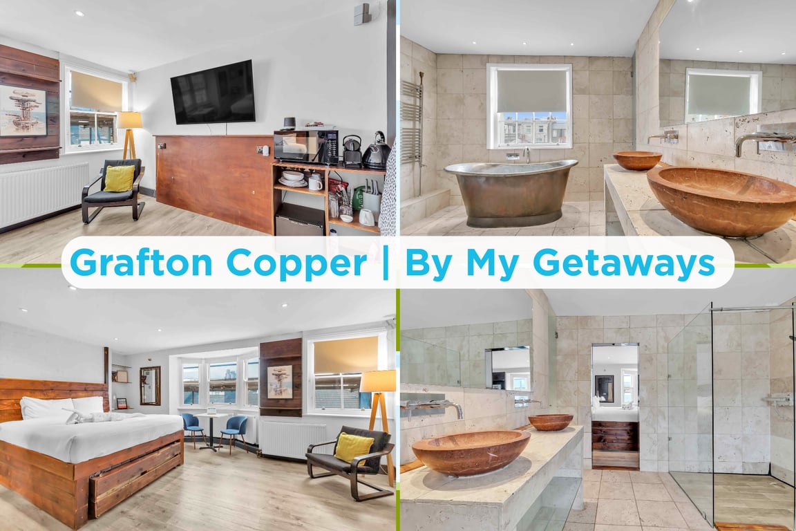 Welcome to the Grafton Apartments by My Getaways – a stylish set of boutique city apartments, sleeping up to 12 guests and located in the heart of Kemptown, Brighton. These smart, character-filled homes are perfect for couples, friends, families or professionals looking for a memorable stay in a prime location. This collection includes apartments such as Grafton Copper, Driftwood, Rustic, Suite and Woodshack — each uniquely styled but all sharing that fantastic seaside-city convenience.