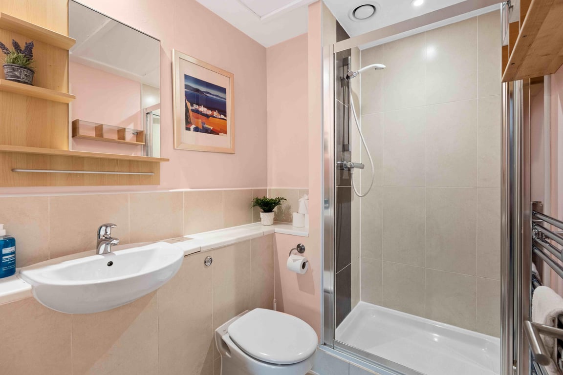 - Bathroom 2 - has a shower, sink, mirror and toilet