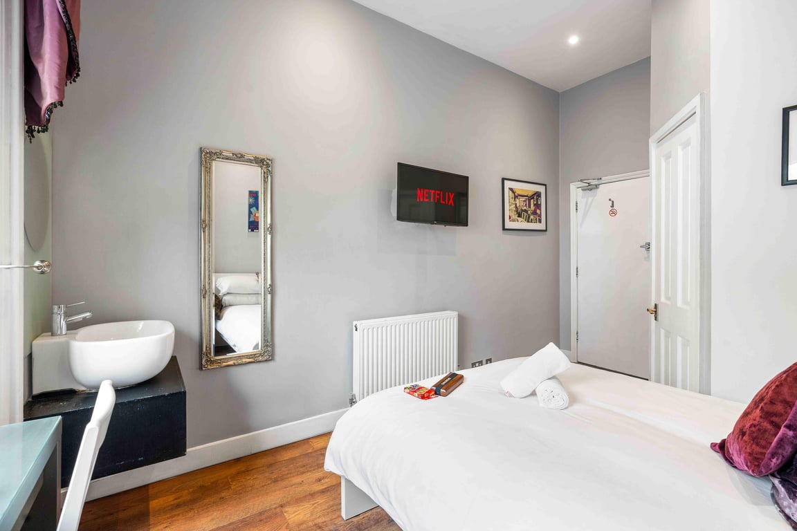 The open-plan studio room has so much character and charm, creating a welcoming space to relax after a day exploring Brighton. It features a comfortable standard double bed and a smart flatscreen TV with free Wi-Fi, perfect for unwinding in the evenings. Simply log in with your own Netflix or Prime account and settle in.