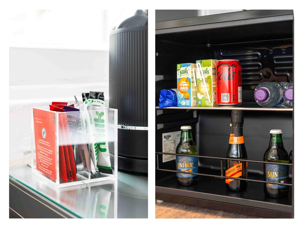 Guests can also make use of a mini-fridge stocked with complimentary bottles of water, sachets of milk alongside a kettle, crockery and cutlery with complimentary teabags and coffee sachets, allowing you to help yourself to a warm drink whenever you fancy. It’s a simple, well-considered private room designed for comfort, convenience and an easy, stress-free stay in a historic setting.