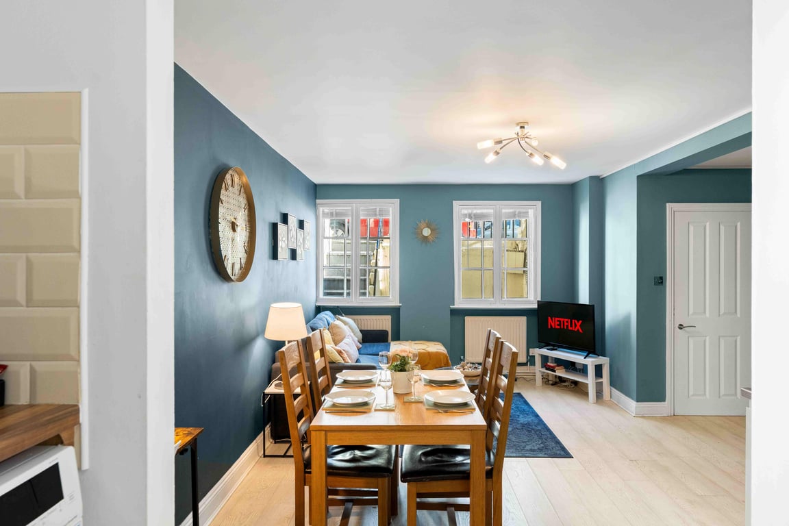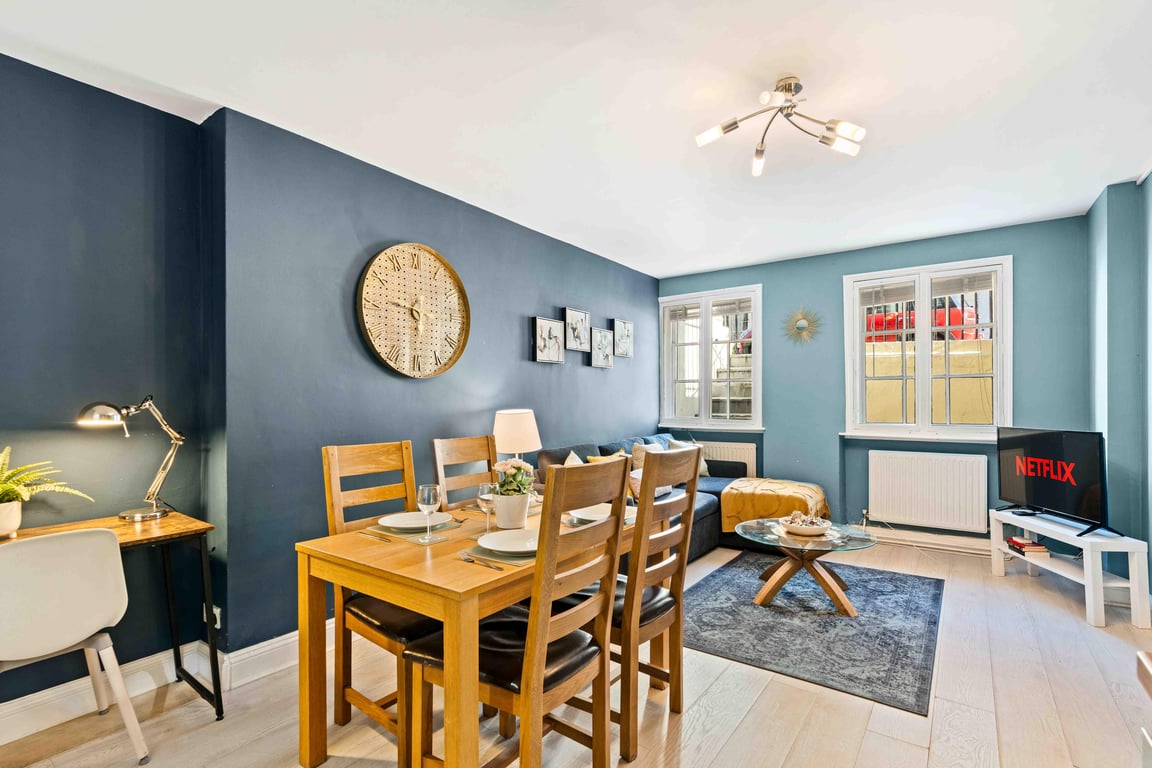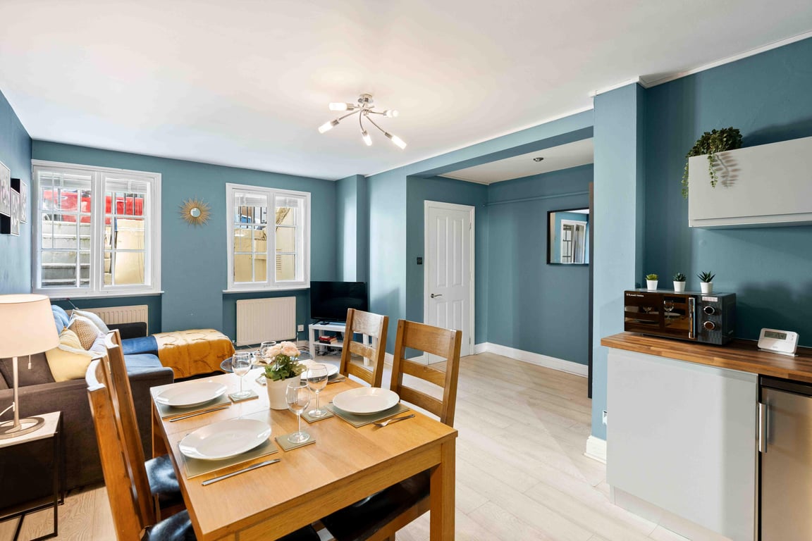 Just moments from The Lanes, with its maze of boutique shops, cafés, restaurants, cinemas, and pubs, you’ll be perfectly positioned for both shopping and nightlife. The world-famous Brighton Pier and beach are also just up the road, giving you the ultimate seaside experience. Inside, the spacious, bright living area includes an L-Shape sofa bed and Smart TV with Free Wifi for streaming your favourite shows through Netflix or Prime (just log in with your own account). The fully equipped kitchen comes with modern amenities so you can cook up a meal and enjoy it around the dining table, which comfortably seats 4 guests.