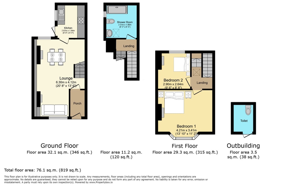 - There is a separate outdoor bathroom with a toilet, basin and mirror.