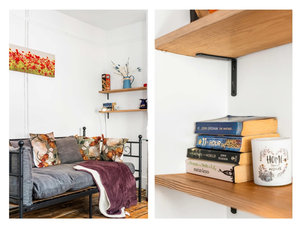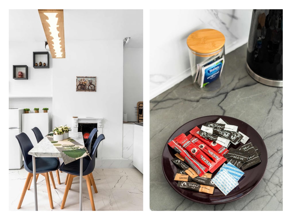 The living area enjoys vibrant natural light overlooking the buzz of North Laine below, and the fully equipped kitchen has a washing machine, gas hob, kettle, plus plenty of cookware, glassware, crockery and cutlery so you can easily cook up a brunch or lunch for everybody. In addition to this, we offer complimentary tea and coffee, salt and pepper - so please help yourself. The dining table seats up to 4 guests. You’ll find the sociable and light living room set up with a Smart TV and double sofa bed, not yet made up as a bed, making it a lovely space for chilling out, getting together for a few drinks or catching up on the events of the day. If you prefer, you can simply relax and watch a movie on the TV.