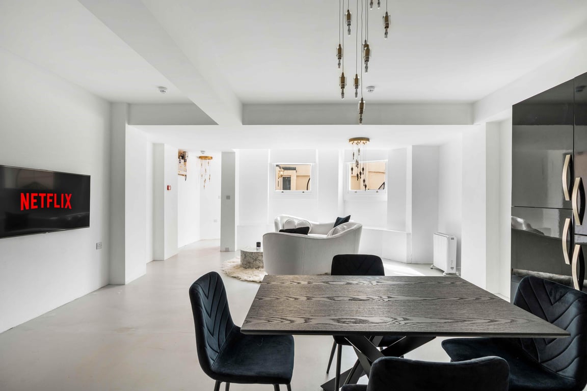 The living area has a tonne of natural daylight pouring in and the fully equipped kitchen has a washing machine, oven, kettle plus plenty of cookware, glassware, crockery and cutlery so you can easily cook up a brunch or lunch for everybody. In addition to this we offer complimentary tea and coffee, salt and pepper - so please help yourself. The dining table seats up to 6 guests. You’ll find the sociable and light living room set up with a Smart TV and double sofa bed not yet made up as a bed, making it a lovely space for chilling out, getting together for a few drinks or catching up on the events of the day. If you prefer, you can simply relax and watch a movie on the TV.