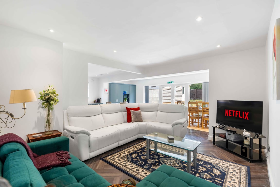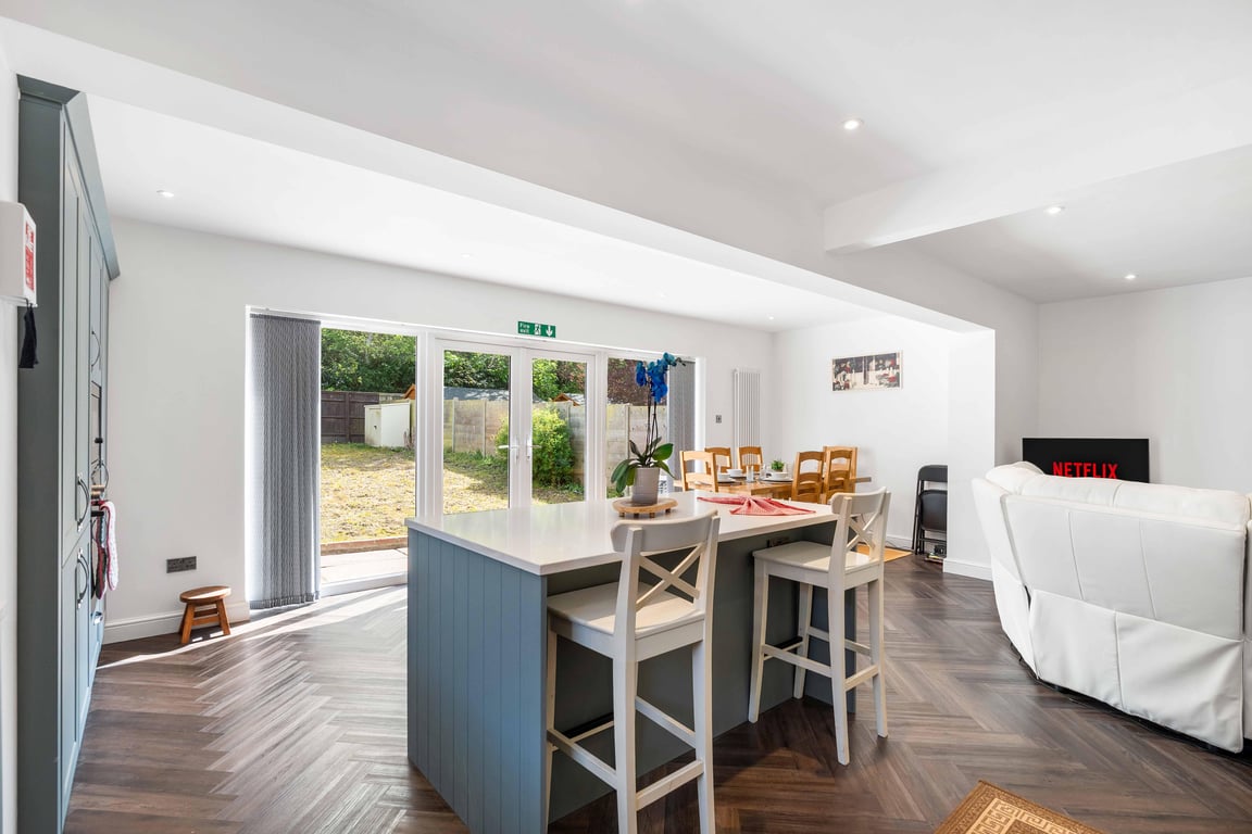 Bright open-plan living, dining and kitchen space ideal for social stays and entertaining, perfect for families, groups and professionals seeking a spacious coastal base in Worthing