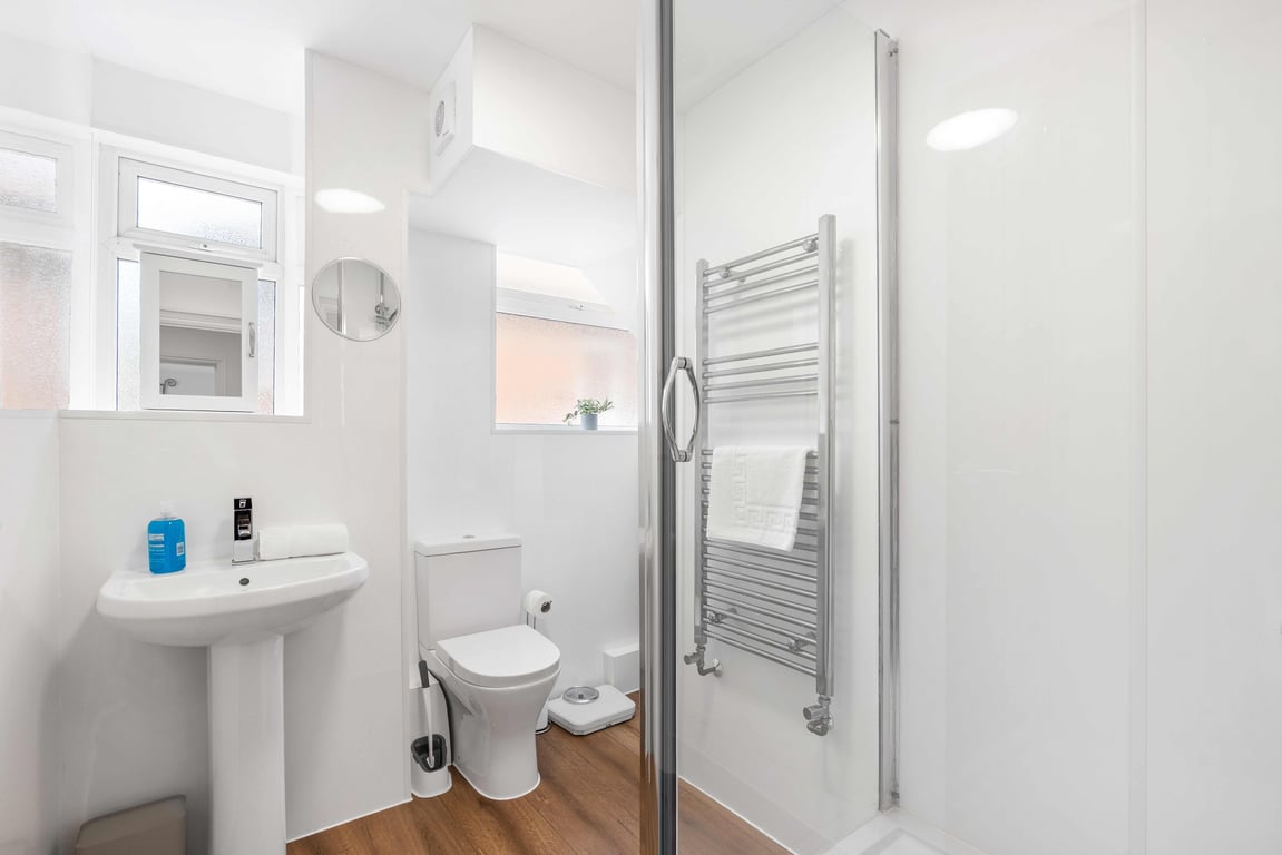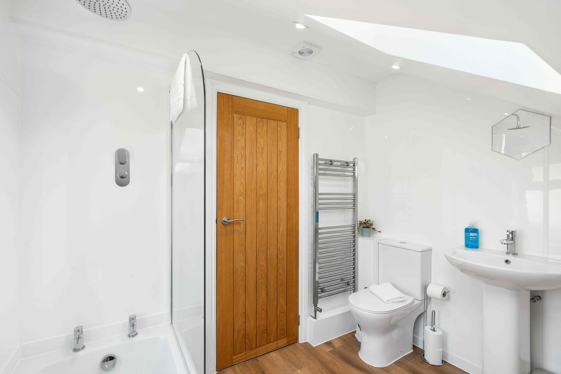 - Ground Floor Bathroom - has a shower, toilet, mirror and sink.