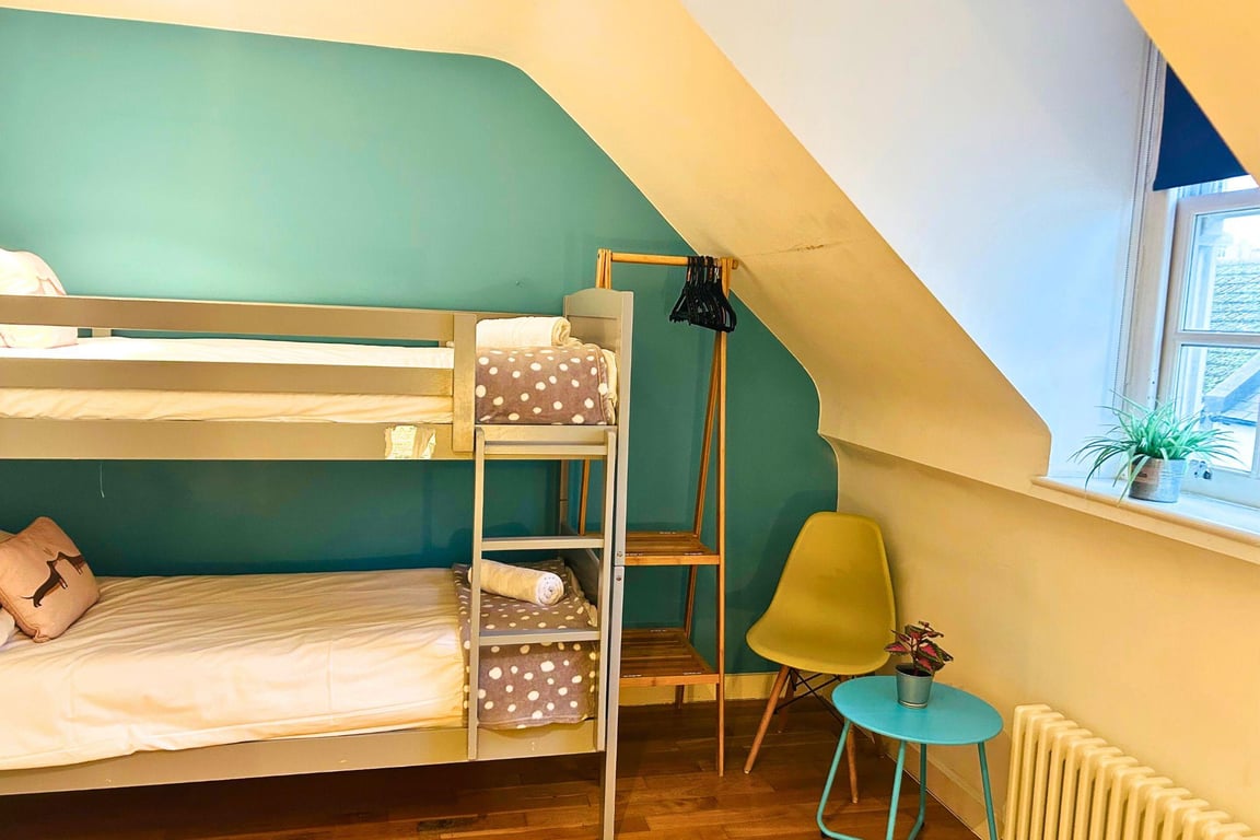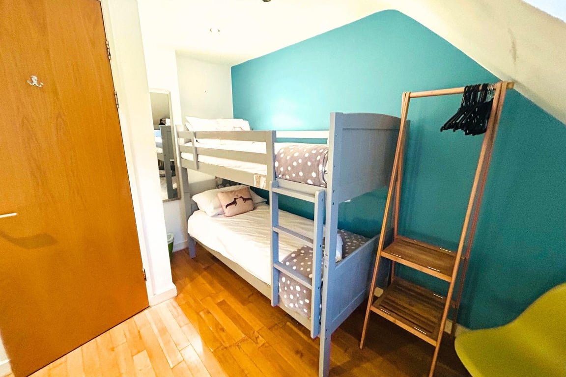 On the first floor, you land in the open plan living room, kitchen, diner, with large period windows to let the sunshine stream in. This room contains a coffee table, and a flat screen wall-mounted 42'' TV. Guests can enjoy high-speed WiFi and a fully-equipped kitchen where you really can treat it as a home away from home. Also on this floor, you will find the family bathroom with fresh towels for each guest.
