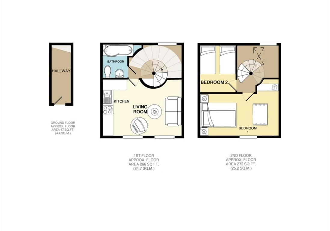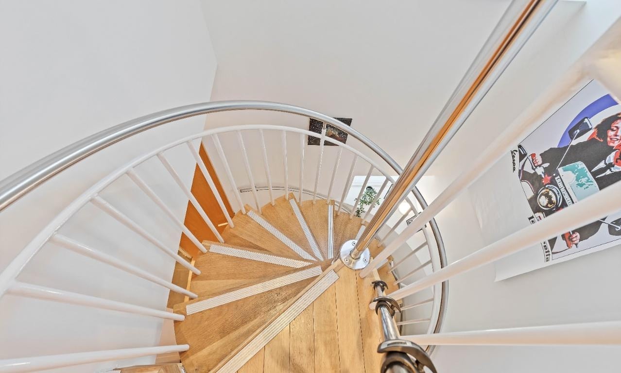 Back to the spiral staircase and up to the second floor, which homes two bedrooms.